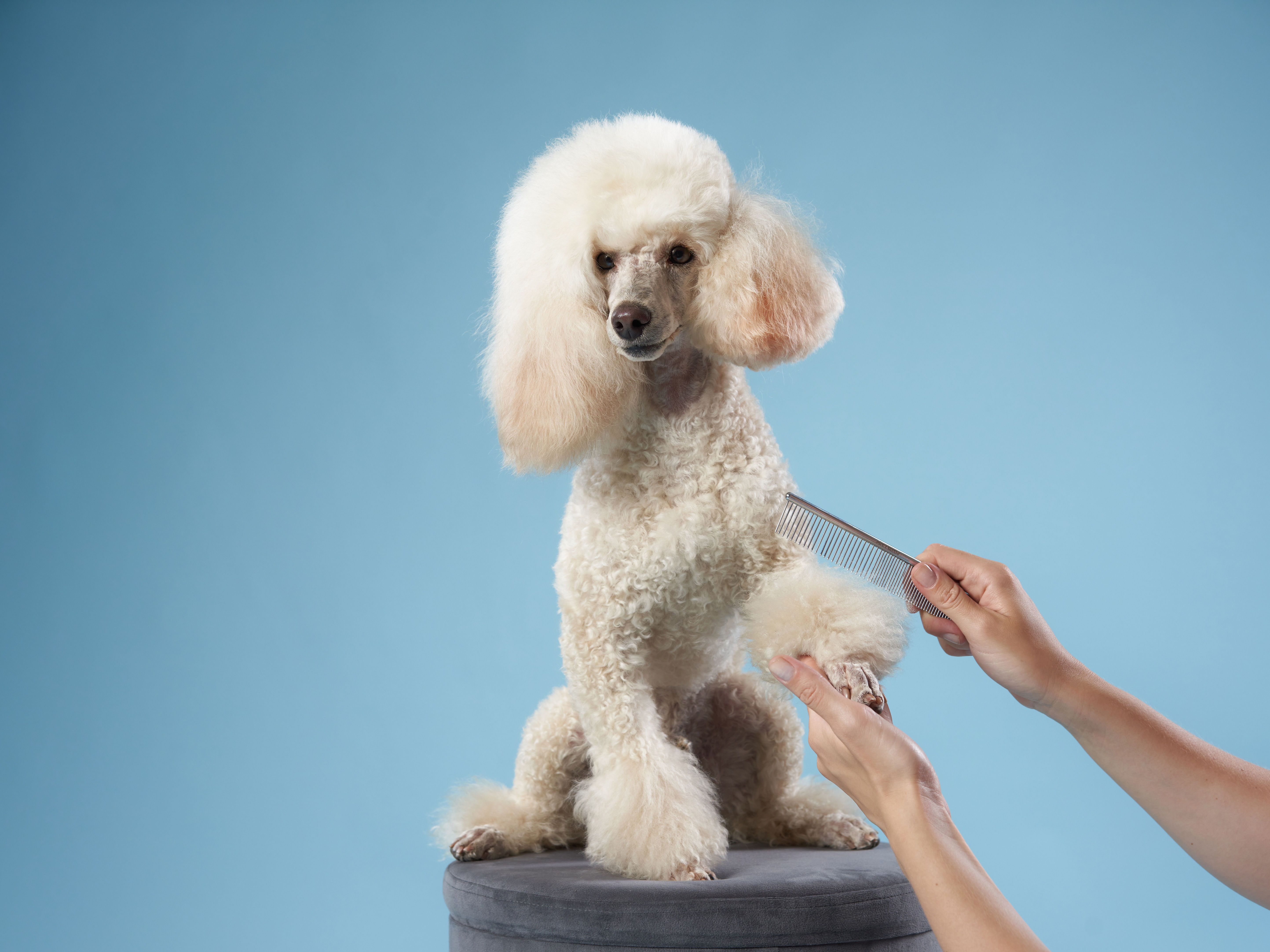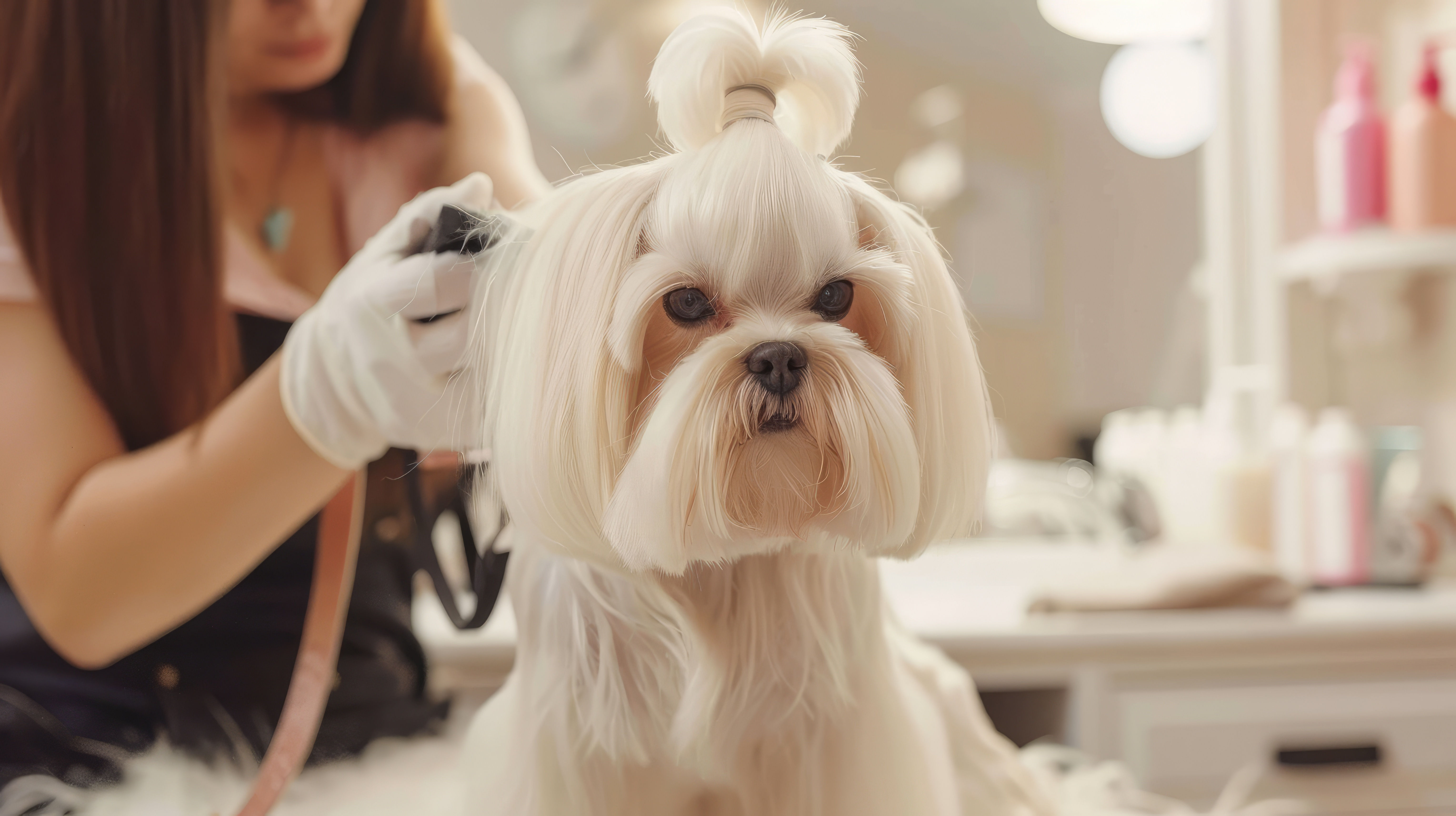 Warm spa bath, blow dry, brush, perfume, nail trim, ear and teeth cleaning.